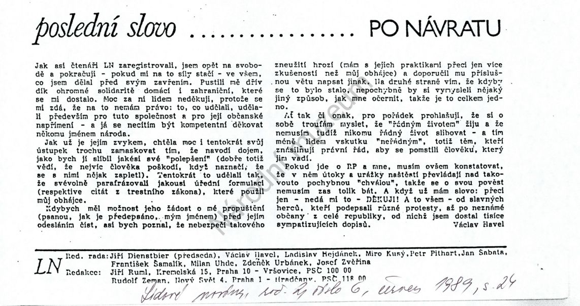 Poslední slovo - po návratu