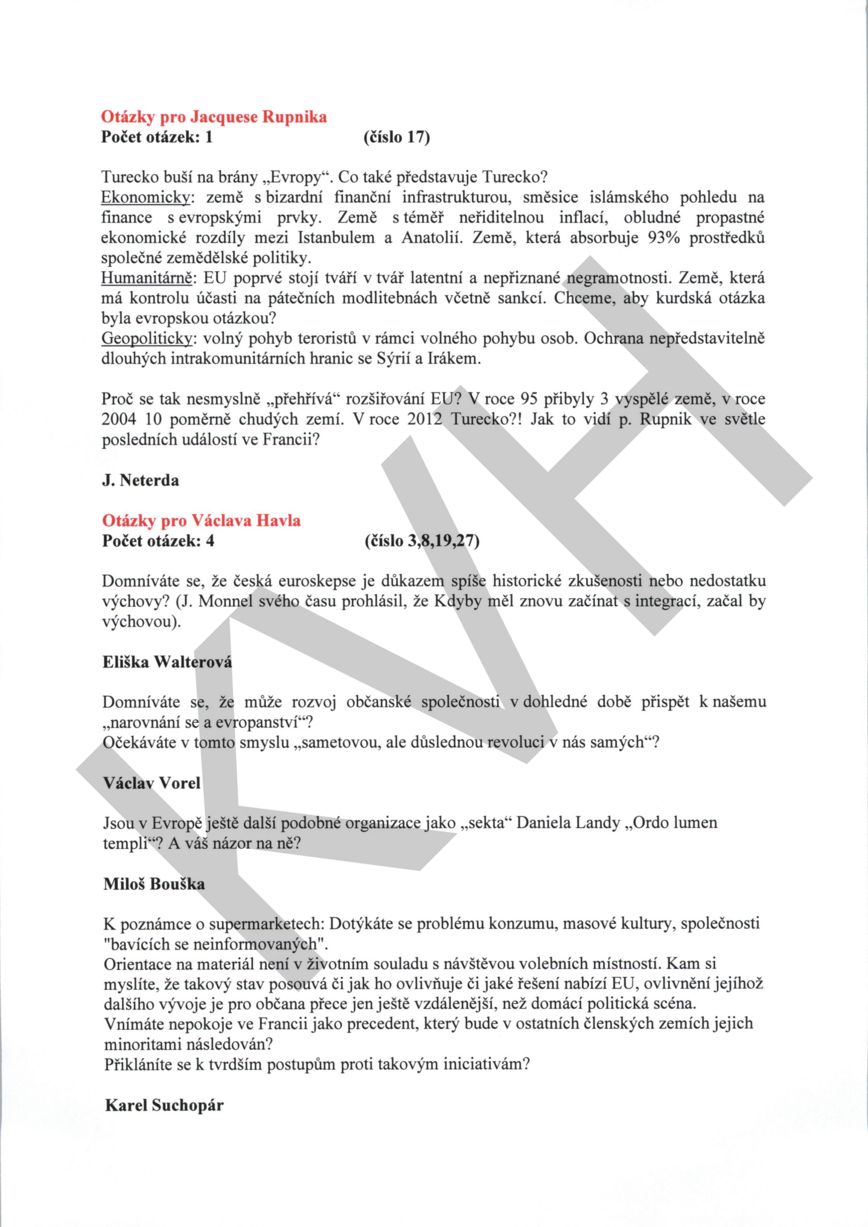 - Odpovědi Václava Havla na písemné otázky z debaty "Zamyšlení nad Evropou"