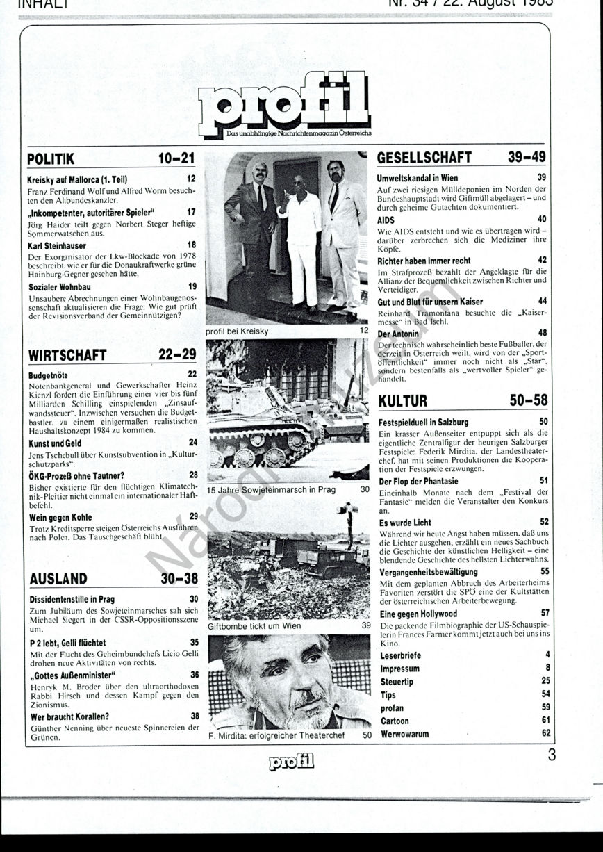 - Profil. Das unabhängige Nachrichtenmagazin Österreichs 1983/ 24; p. 32-34