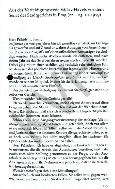 - Západ 1991/5, roč. XIII, str. 13-18: Pod nadpisem „Havel odmítá nabídku na vystěhování“