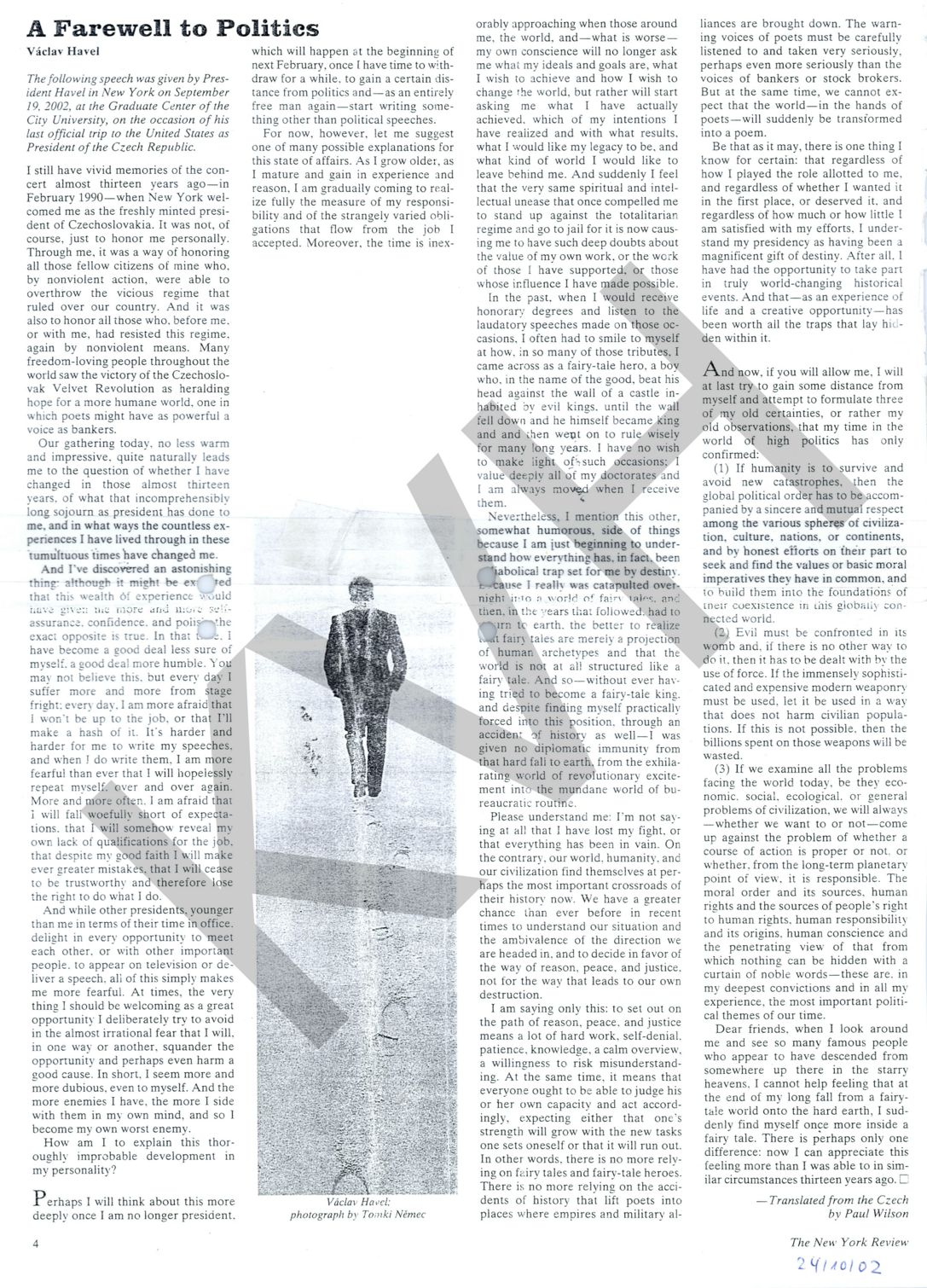 - Druh dokumentu: novinový výstřižek / projev