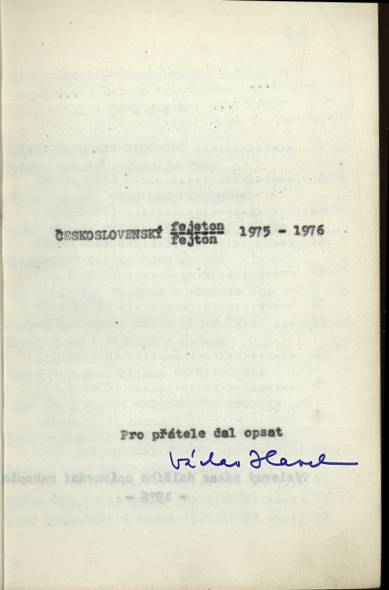 - Poznámka k exempláři: původní uložení - knihovna Václava Havla, Hrádeček; věnování Václavu Havlovi