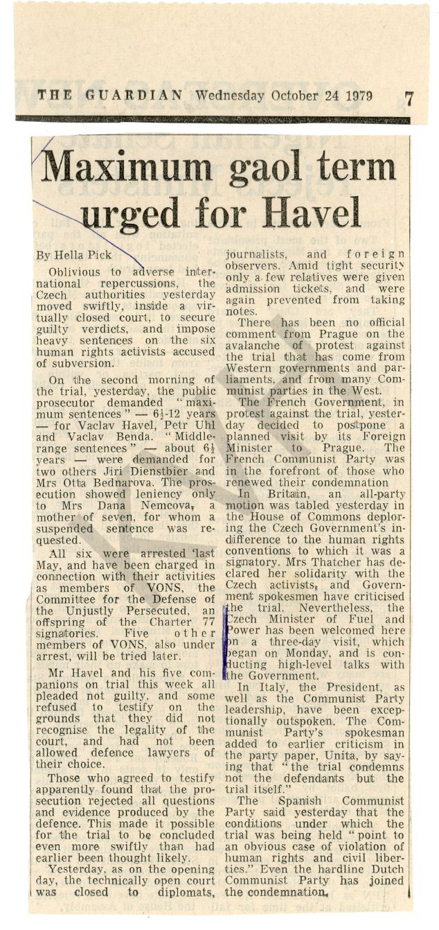 - Západ 1980/1, roč. II, str. 14-15: Komentář Gordona Wrighta k procesu