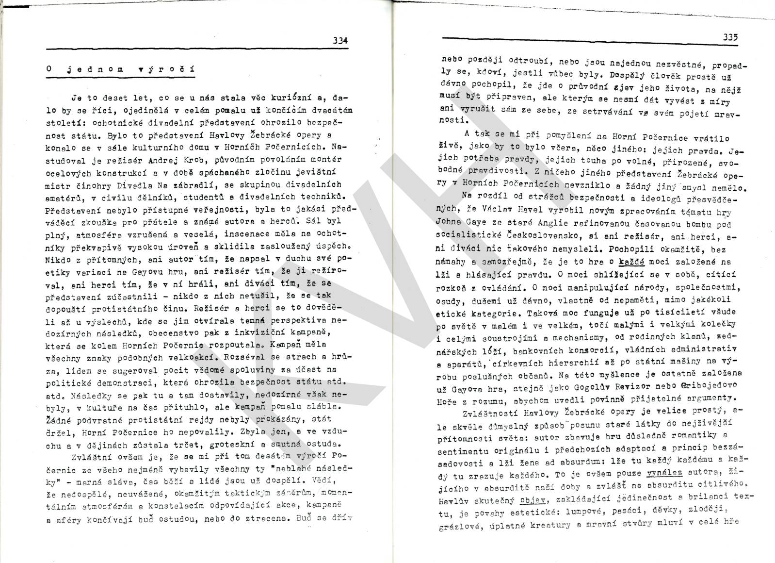 - Událost: Světová premiéra hry Václava Havla Žebrácká opera v Horních Počernicích v sále hospody U Čelikovských