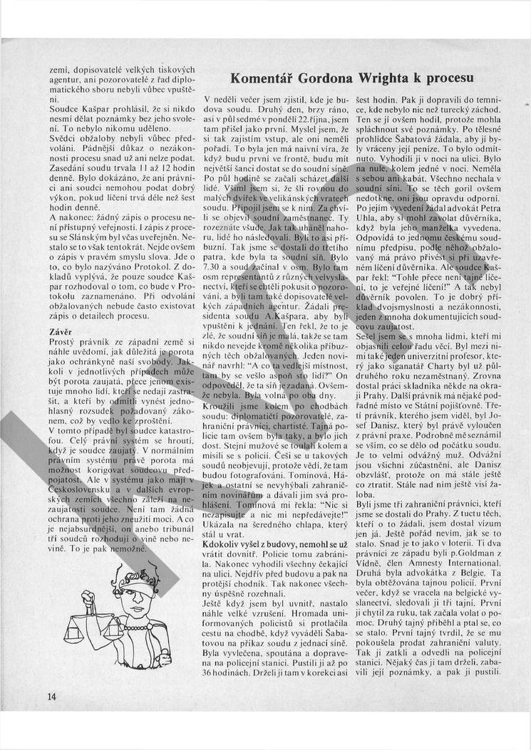 - Západ 1980/2, roč. II, str. 7-8: Komentář Gordona Wrighta k procesu