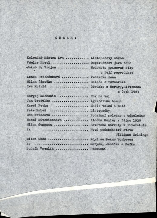 • Klíčová slova - obsah: periodika / samizdat / české samizdatové časopisy / Odpovědnost jako osud
