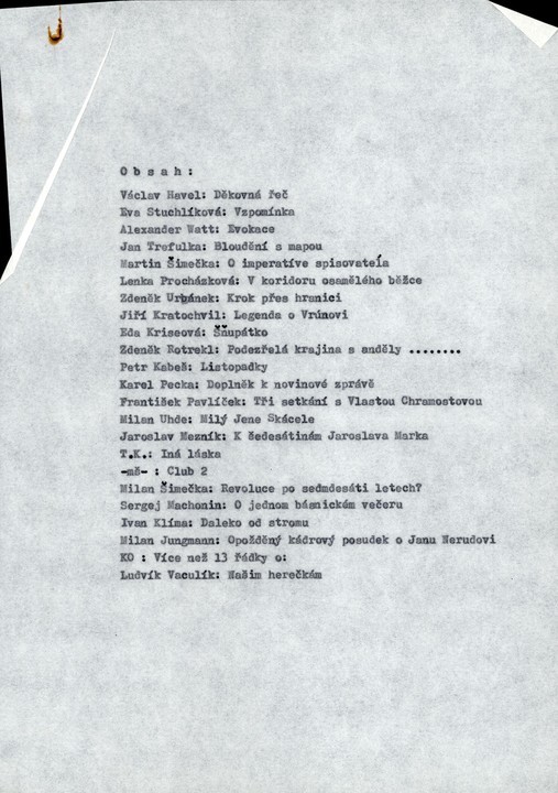 - Klíčová slova - obsah: periodika / samizdat / české samizdatové časopisy / Děkovná řeč k Erasmově ceně
